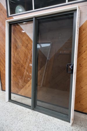 This alloy sliding door unit is grey in colour.