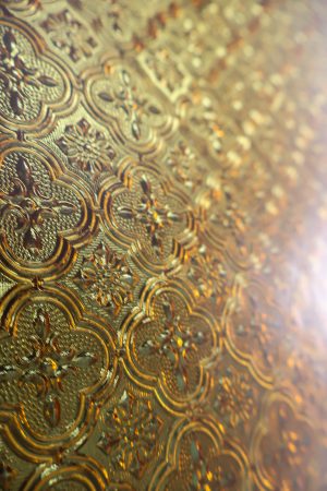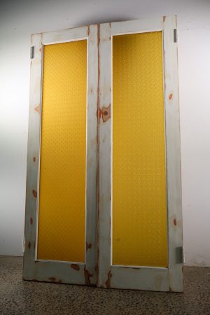 Arabesque amber glass door set removed from a mid century home.