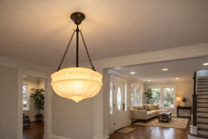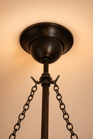 A thick creamy shade on a patina 3 chain suspension.
