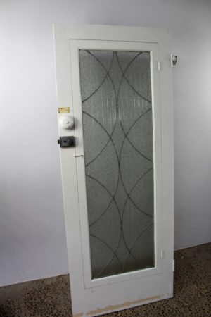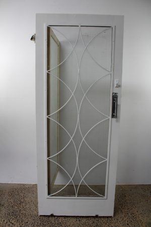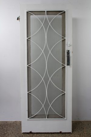 With front screen wire mesh, lock, striker plate , hinges and chrome pull handle.