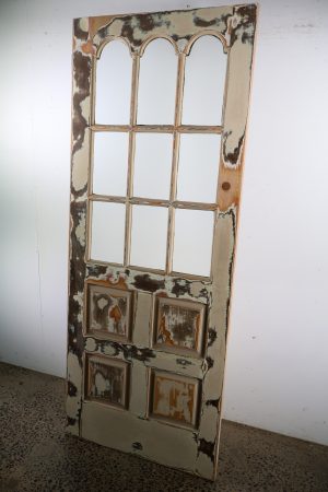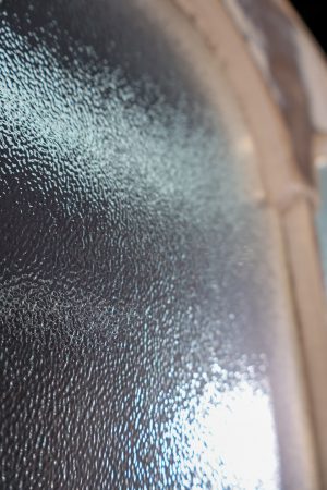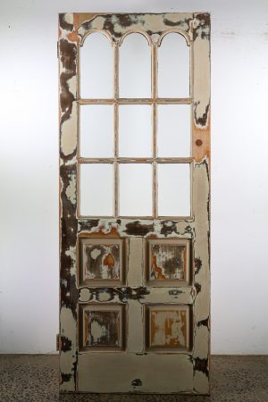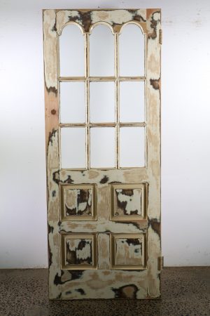 Nine panes of spotswood privacy glass with top three panes that are arched.