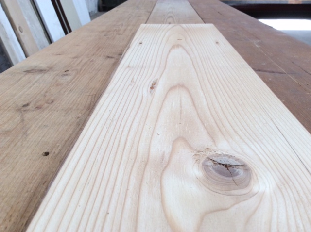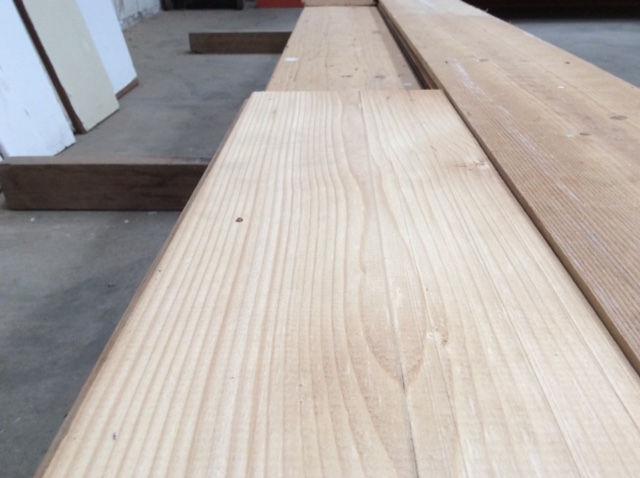 The timber is pale in colour when sanded back to its raw state with lovely rich grains and tight knots. You can coat this timber with a clear finish ( au naturale! ) or it takes a variety of stains.