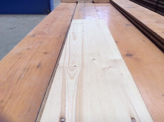 Recycled flooring commonly has 1 mm variation either side of the specified board width. If you wish to match an existing floor please bring a sample.