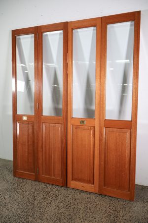 These nice bevelled glass bi folds are made from hardwood timber.