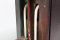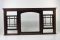 Boxed redwood timber frame, 7 mm thick clear bevelled glass in centre, 5 mm thick bevelled glass in sides.