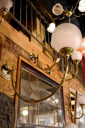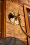 This bold brass wall sconce is a large piece that will brighten up any room.