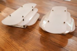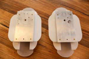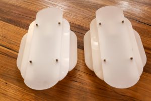 These amazing Brighton Deco bathroom lights were used either side of the large bevelled mirror on the wall.