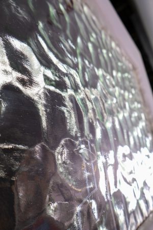 Arched top with original flemish glass for privacy.