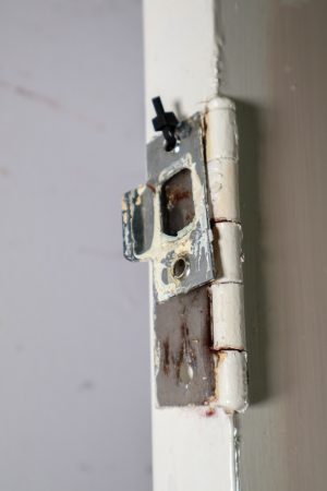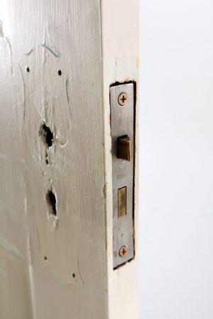 Mortice lock, striker plate and hinges included.