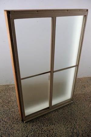 Budget bathroom window , alloy frame with timber reveal.