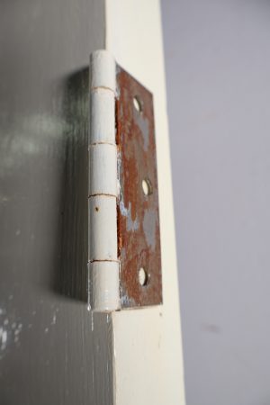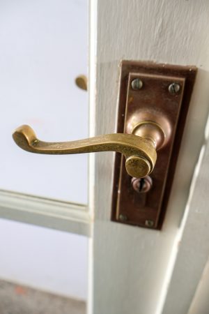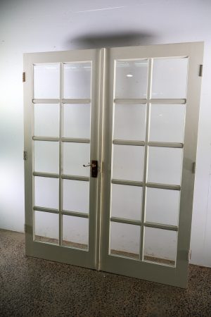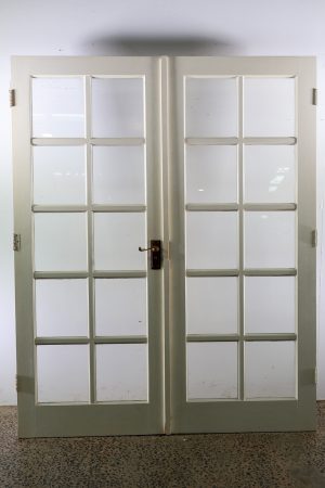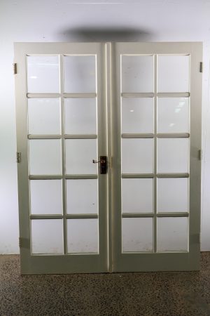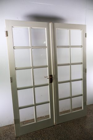 Chunky timber frames, clear glass, brass handle set, lock and key.