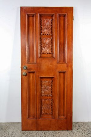 Wood carved design on front, flush panel on internal side.