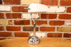 These chrome study table lamps mimic the iconic ‘Emeralite’ table lamps that have been in circulation since the early 1900s.
