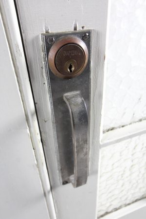 Diamond lock, striker plate, hinges, pull handle and spy hole included.