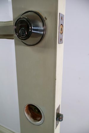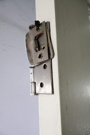 With hinges, Brava lock and striker plate.