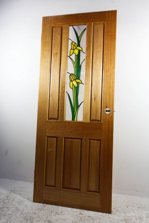 This contemporary leadlight door is made from hardwood timber that’s unpainted and oiled.