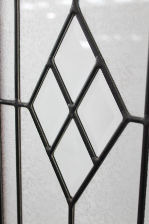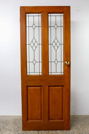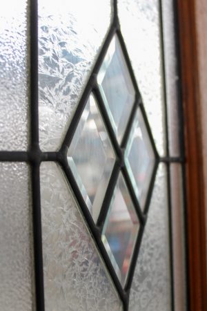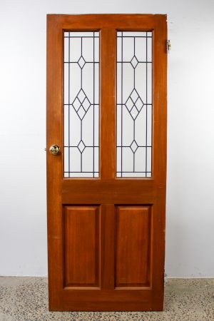Contemporary leadlight front door with various styles of glass spotswood and bevelled edge diamonds.