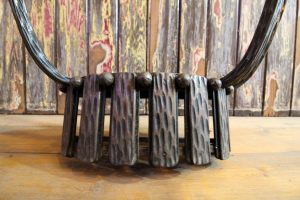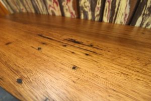 Heavy duty iron frame now with incredible recycled hardwood timber top containing beautiful textures.
