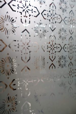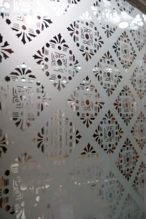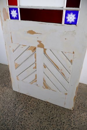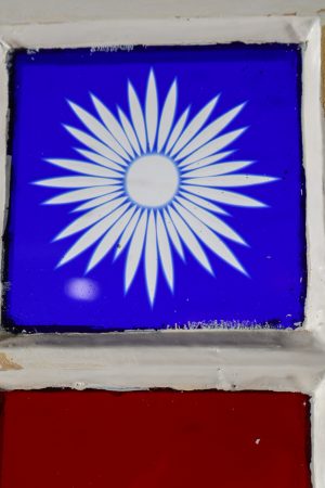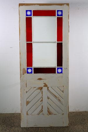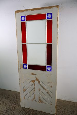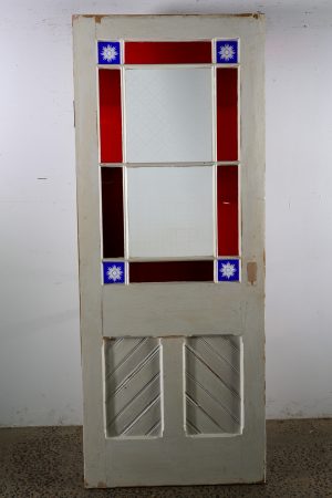 Victorian patterned glass the centre, various styles of red glass and stunning blue feature corners.