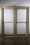 A mix of redwood and hardwood, this contains clear glass throughout.