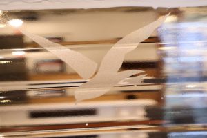 Clear fluted glass with ocean scene that’s very cool indeed.