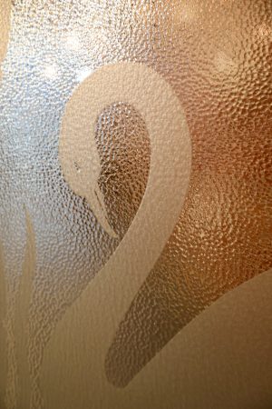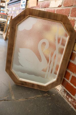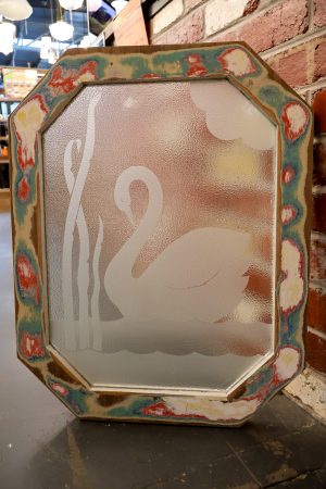 An incredible etched swan display originally discovered in West Side Art Deco home.