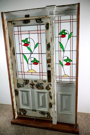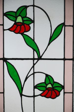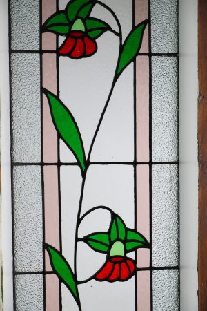 This Fairfeild leadlight entrance is a colourful unit with various styles of glass.