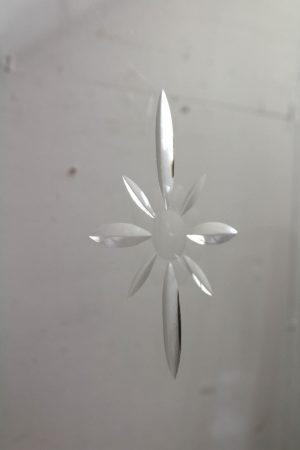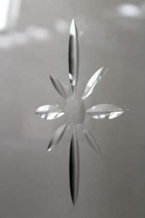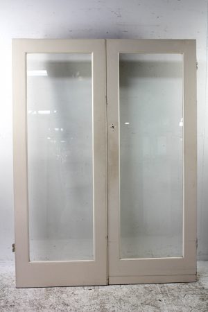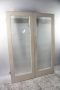 Clear glass with very cool bevelled inserts in the centre of each door.