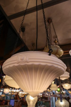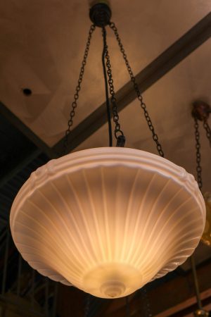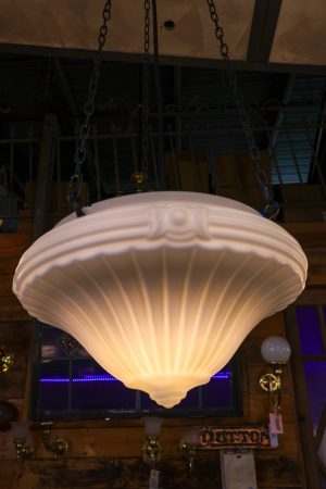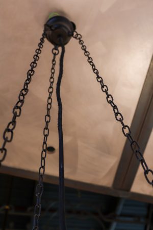 A stunning well detailed and thick glass shade on a new 3 chain patina suspension kit.