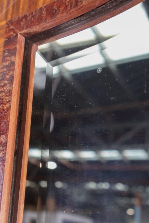 This grand timber mirror is a hardwood piece with a feature bevelled edge mirror insert.