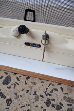 Clear glass, with timber reveals, fly screen, locks and key !