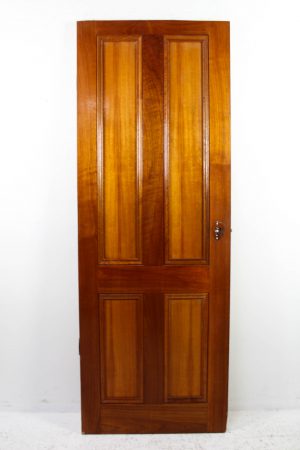 Hardwood four panel door that’s 35 mm thick, unpainted and oiled.