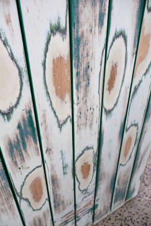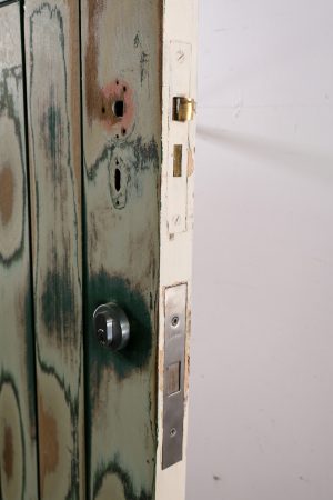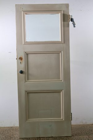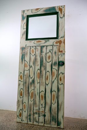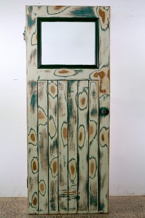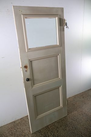 Hardwood timber frame , 3 panel design on internal side, flush vertical panels on external side.