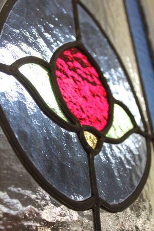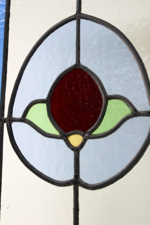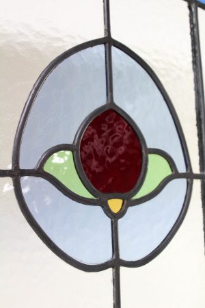 Leadlight inserts with various styles of glass including Cathedral in blues, greens and reds.