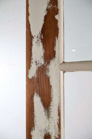 Chunky redwood timber with clear glass throughout the 16 panes.