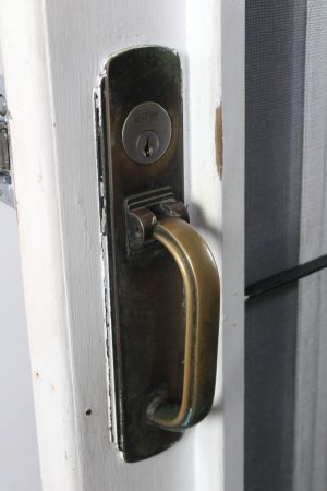 Lockwood deadlock, hinges wire mesh and original door knocker.