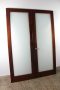 Laminate glass privacy doors made from chunky hardwood timber that’s unpainted and oiled.