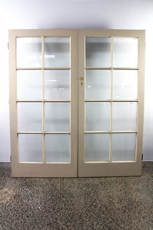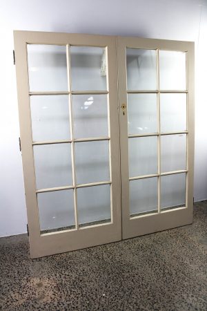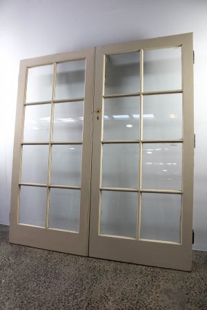 Large colonial door set made from redwood timber and containing clear glass throughout.