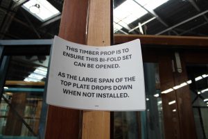 Please note – we have placed a timber prop in the centre, this is a large span and top plate drops down when not installed.