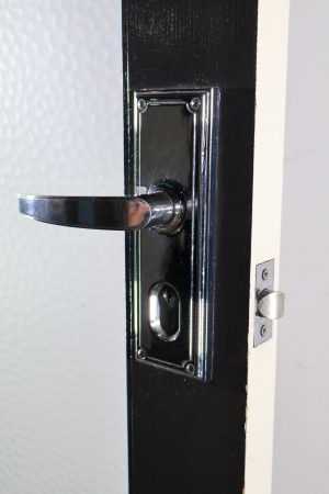 Hinges with Gainsborough chrome handle set and lock.