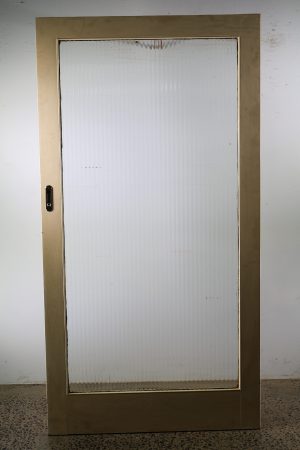 Large sliding fluted glass door made from hardwood timber.