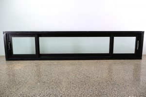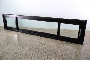 This long double glazed sliding window is black in colour, an alloy frame won’t last long.