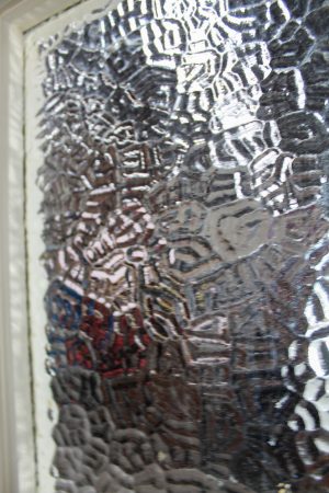 Narrow part glass door set that contains Kosciusko privacy glass.
