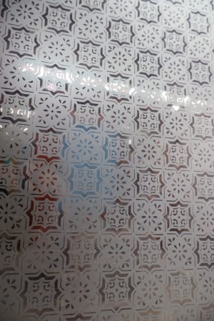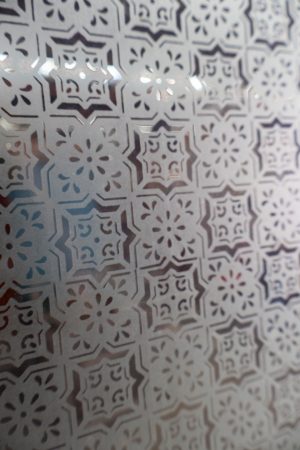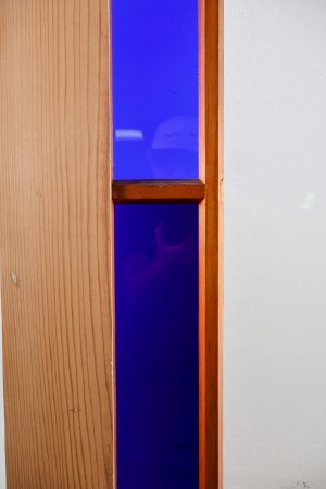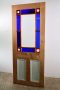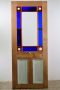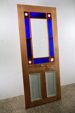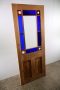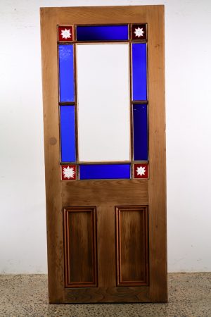Unpainted and contains various styles of glass including various deep blues, red corners and Victorian patented centre.