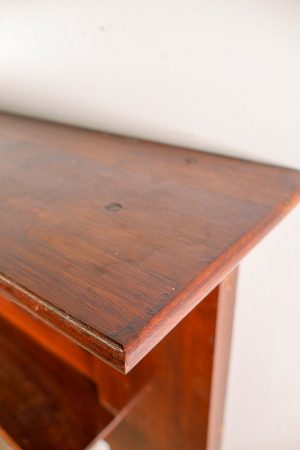Hardwood timber with a dark stain.