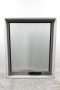 grey frame with timber reveals, clear glass, flyscreen and lock included.