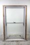 Hardwood timber frame with 6.38 mm thick clear laminated safety glass.