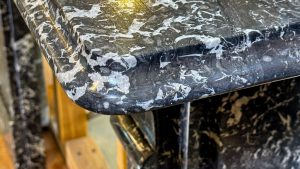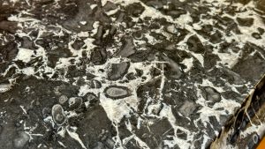 A stunning marble highly sought after for its warmth and masculine characteristics, its intrigue centring around the contrasting tones of grey with white veins and multitudes of fossils throughout.