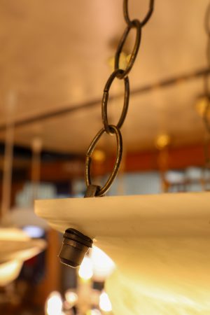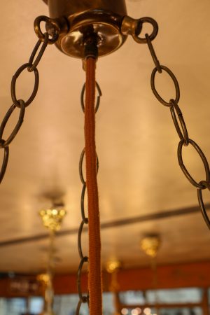 This petite three chain light was discovered in a Elwood home.