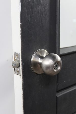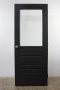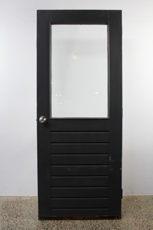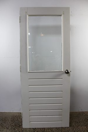 A hardwood door with 6.38 mm thick clear laminated safety glass for maximum security.